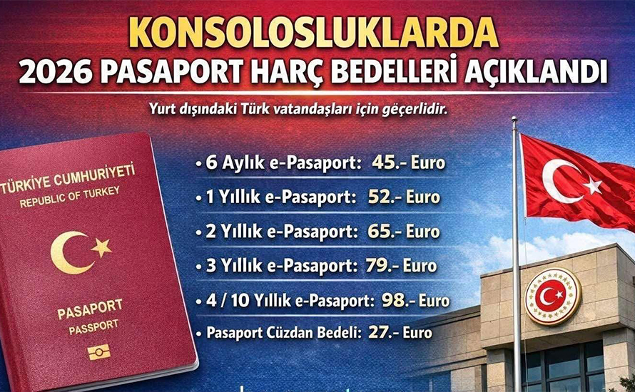 2026 Yılı konsolosluk pasaport harç bedelleri